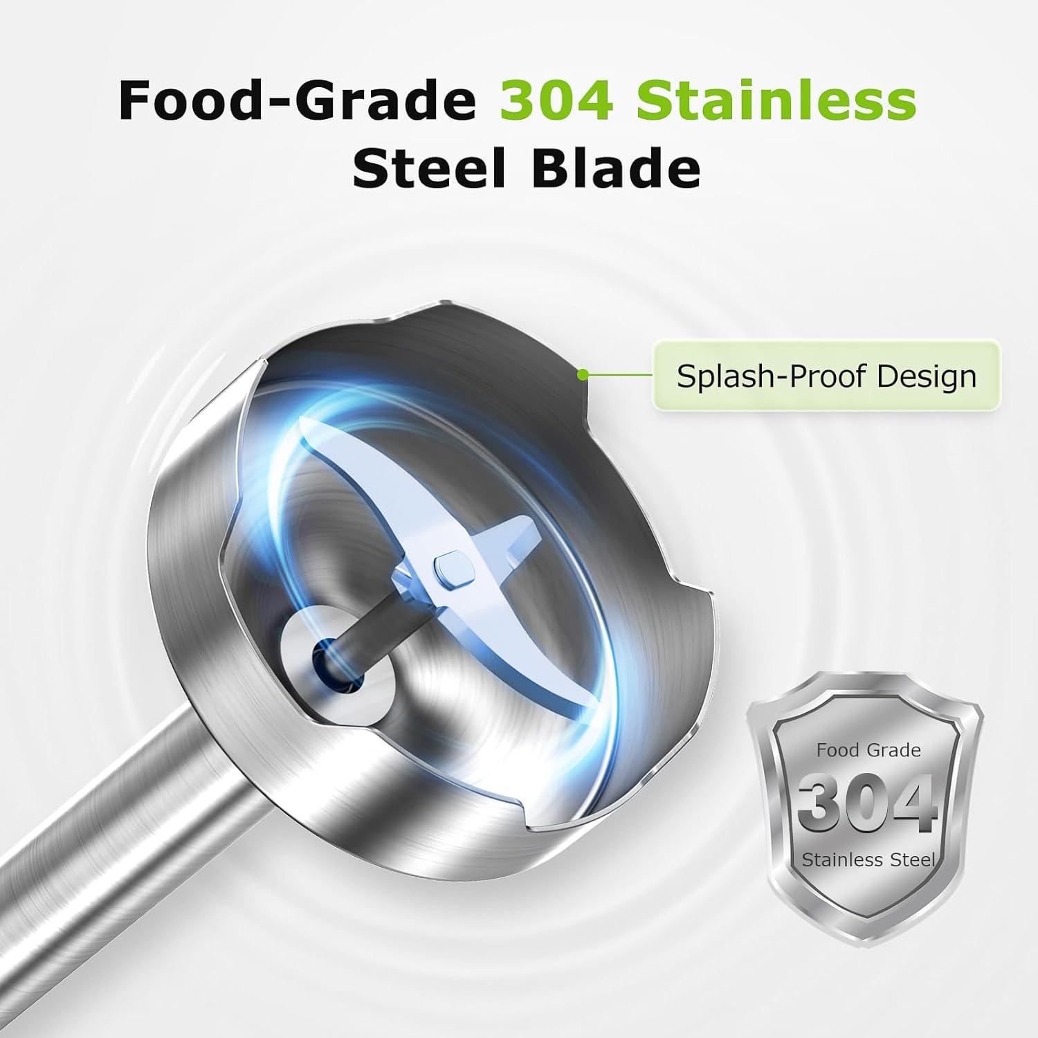 Durable Construction & Splash-Resistant Design Built with a sturdy, scratch-resistant stainless steel body, this emulsion blender handheld is designed for longevity. It features a sharp, durable stainless steel blade that maintains its edge. The semi-enclosed blade guard is engineered for anti-splash blending, minimizing mess and preventing food from sticking.
